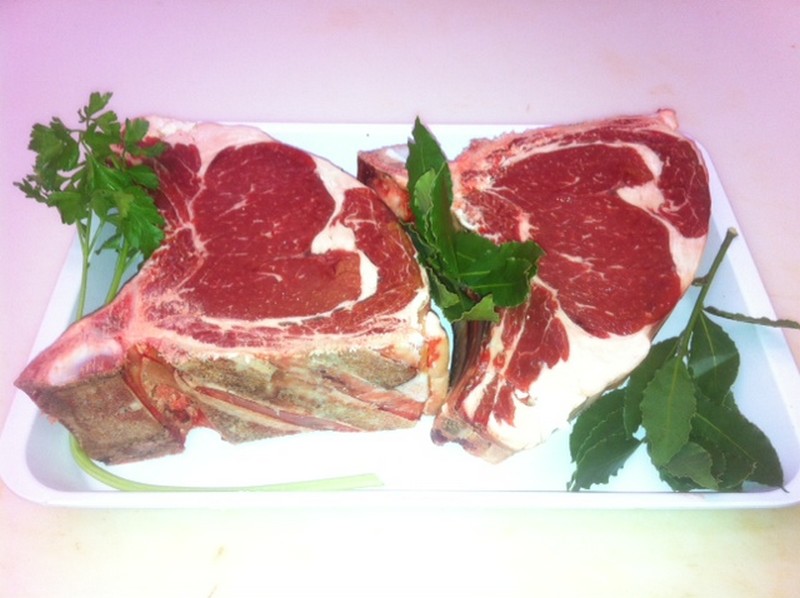Ingredienti: 1,2 kg di Lombata di Manzo con filetto tagliata in due bistecche-sale –pepe. Non battete la carne che dovra’ essere alta circa 2,5 cm. Scaldate bene la graticola sulla brace viva,ma senza fiamma,e disponevi la carne. Quando in superficie affioreranno le goccioline di umore sanguigno,voltatela,senza pungerla, salatela e pepatela. Ripetete l’operazione quando volterete nuovamente le bistecche. Servite. Se non avete la possibilita’ di cuocere le bistecche sulla brace, mettetela in una padella di ferro caldissima e procedete come soppra’ descritto. Potete servirle irrorate con un filino di olio crudo e una spruzzata di limone-